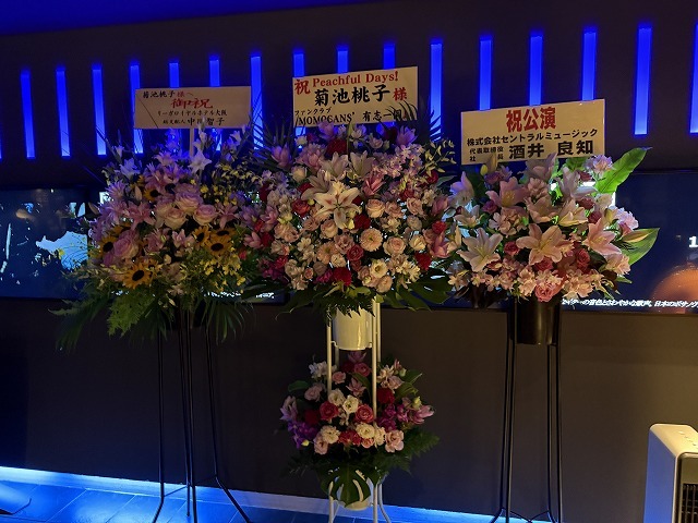 ビルボードライブに入ると・・・綺麗なお花の前を通って受付してもらい、早速、物販の列に並びました。
