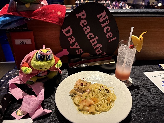 分身2号に周囲を監視させて、その間に今回の“Peachful Days” スペシャルメニューのペペロンチーノとカクテルをいただきました。