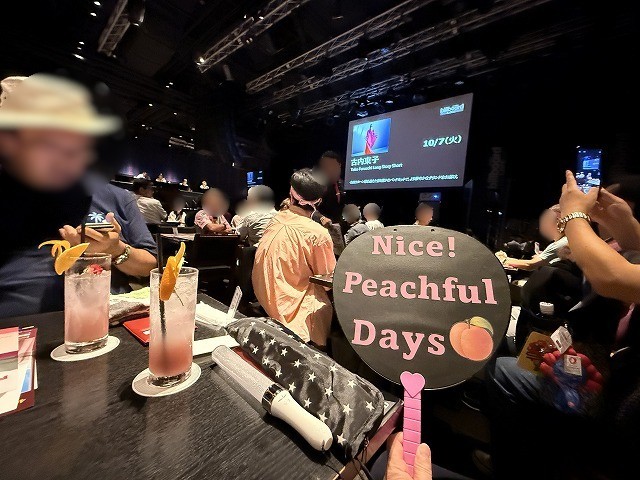 ライブの後は、恒例の「桃活食堂」という名の飲み会にも参加させていただき、みんなでマイクを回しながら順番にワンフレーズずつ桃子さんの歌を歌うというカラオケが大盛況で、オーストラリアから参加のメンバーも大いに楽しんでおられました。