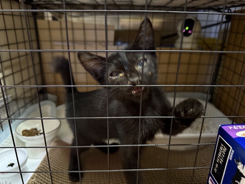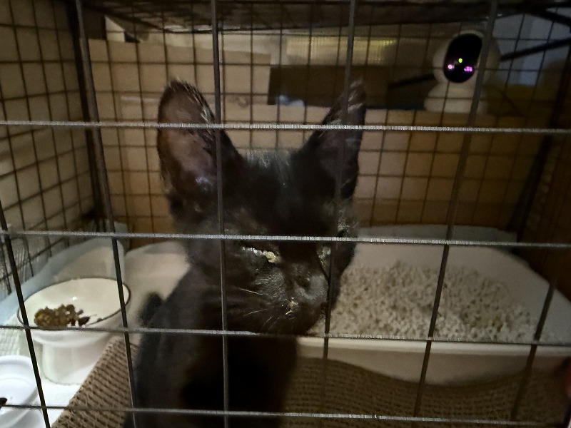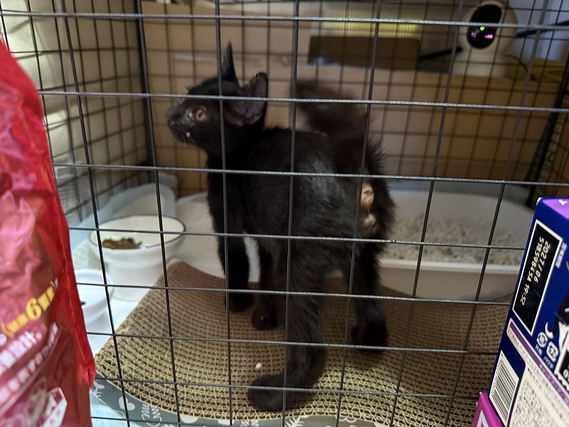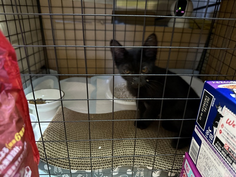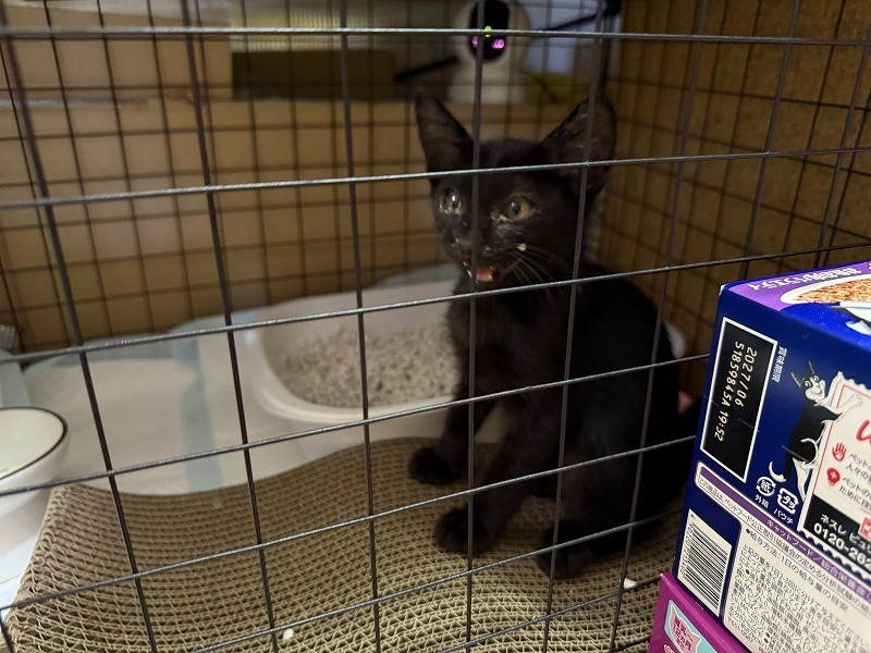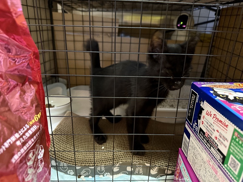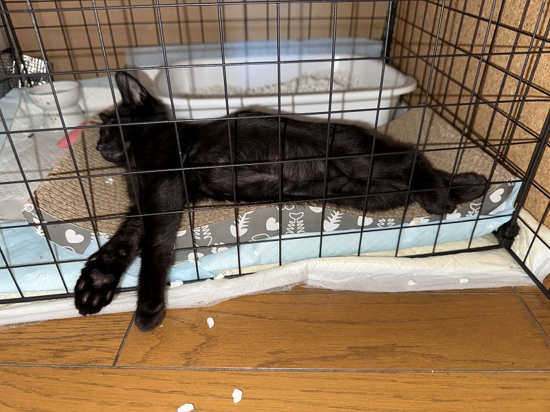 普段は、猫娘3人衆と隔離するために、ケージにタオルを掛けているので、ケージの中が見えません。