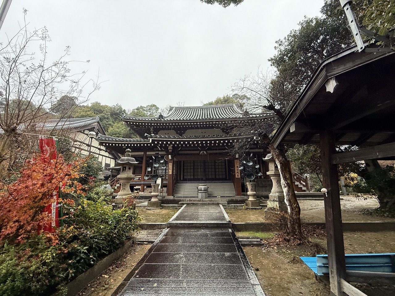 ちょうど定例行事の日だったようで、本堂にはたくさんの檀家さんが居られる中、お参りさせていただき、納経をいただくことができました。(写真に傘の柄が写り込んでしまいました