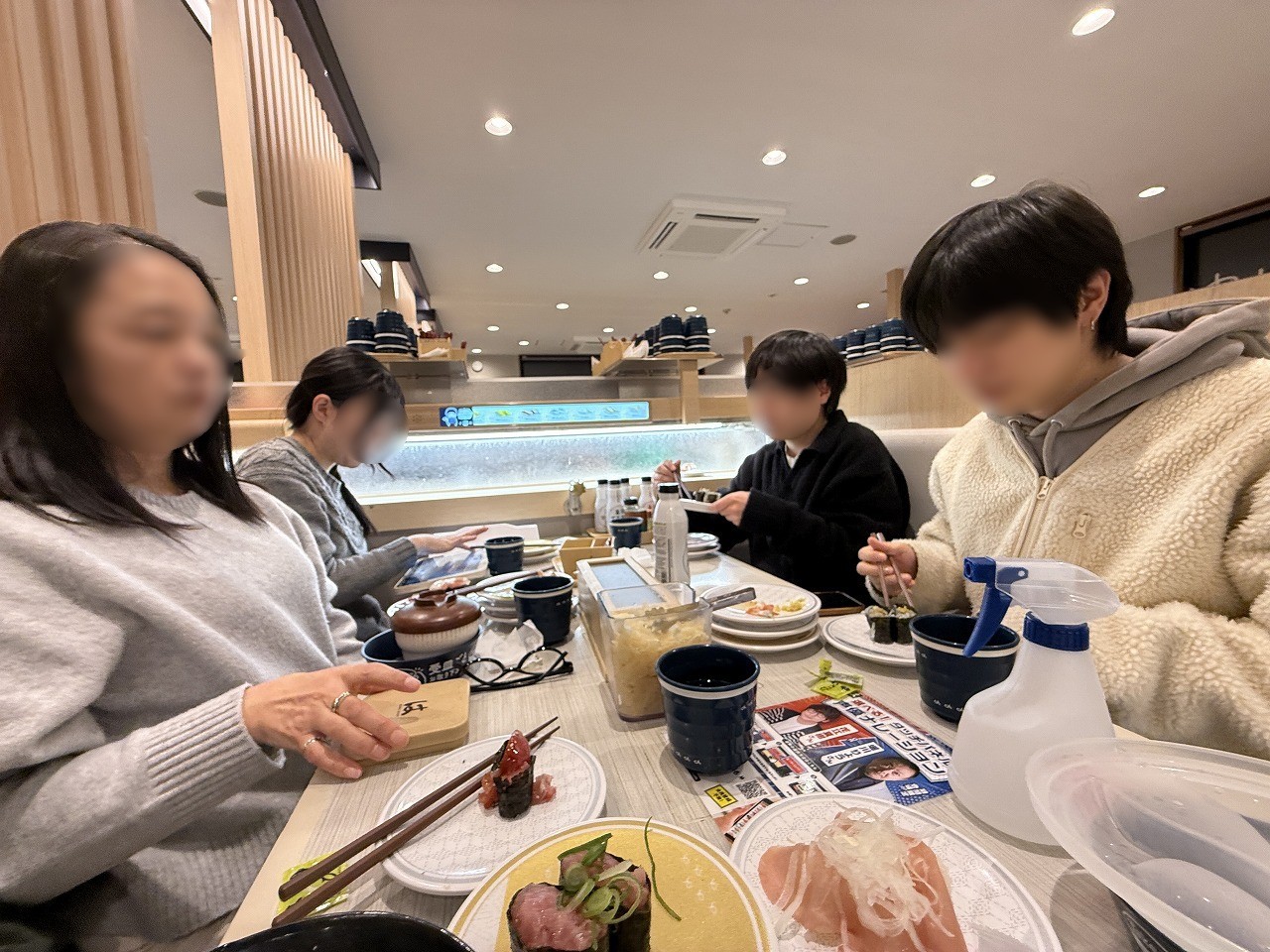 そんなこんなで帰宅が遅くなったので、夕食は外食することにして、奥さんが仕事だという次男も誘いましたが、奥さんの帰る時間がわからないから自分たちは遠慮するとのことで、長男、三男、長女の5人で回転寿司へ。