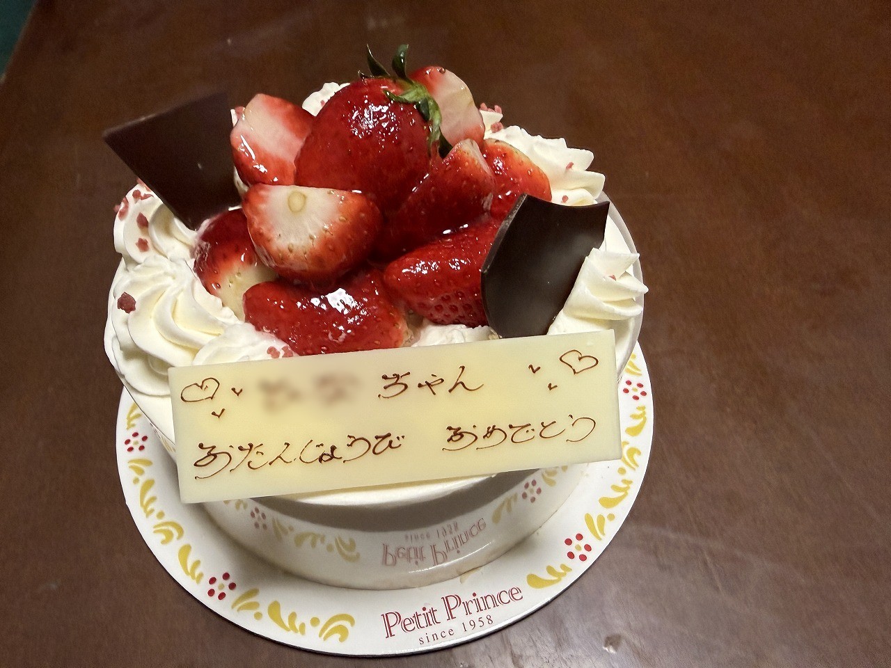 ケーキは当日予約は6号サイズは無理なので、5号サイズで我が家にしては少し小さめです。